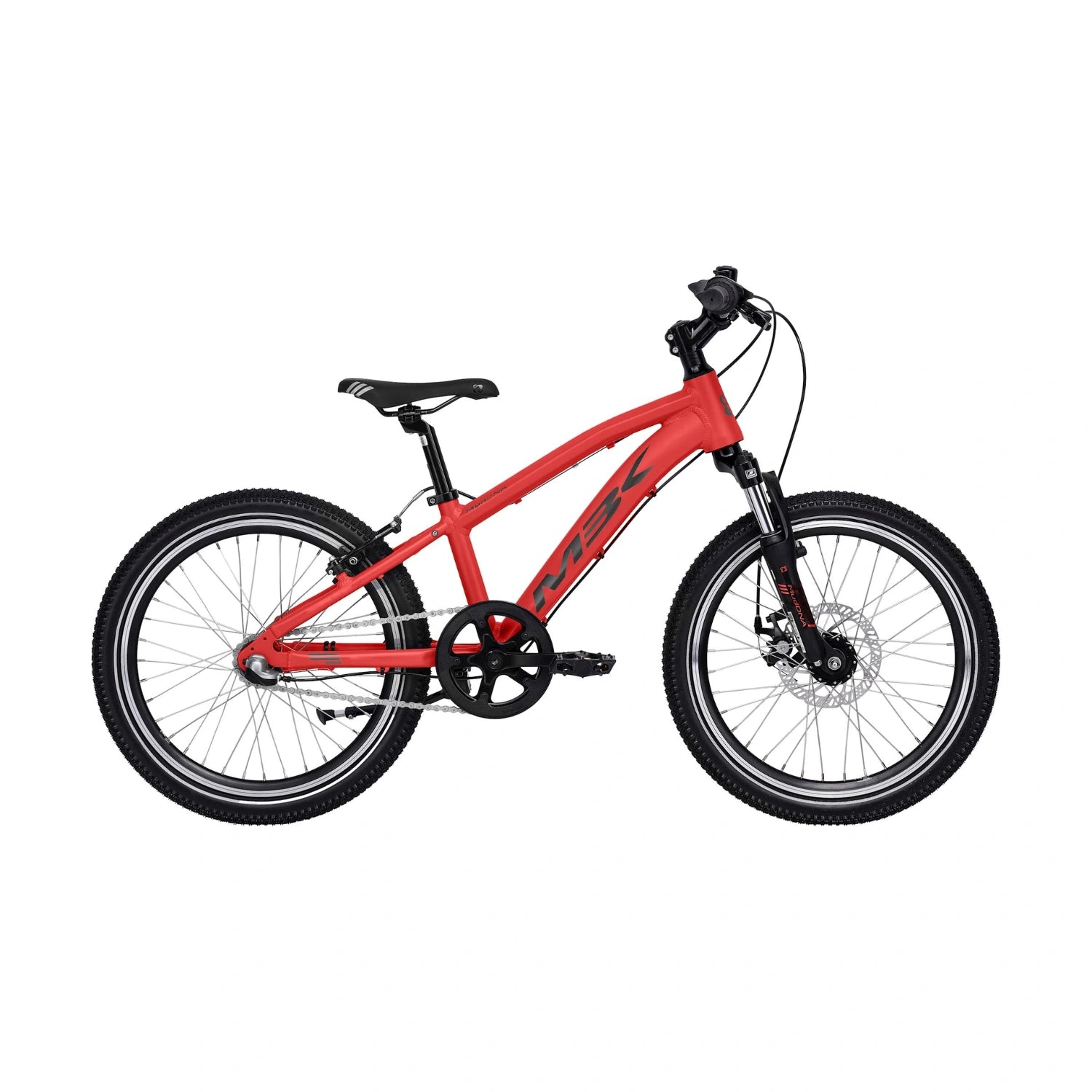 MBK Mud DNA børnecykel i mat rød med 20" hjul. Du får her en cykel i mountainbike stil til børn, der elsker at cykle. Om det er til skole eller i fritiden ude i skoven, så falder Mud DNA i smag hos de fleste. Cyklen har et veludført aluminiumsstel, der kombineret med en affjedrende forgaffel og mekanisk skivebremse både er sjov og sikker.
