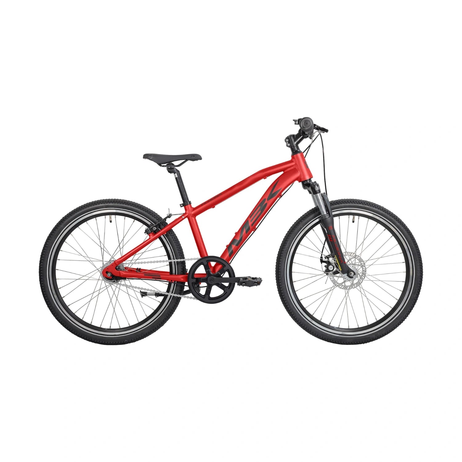 MBK Mud DNA børnecykel i mat rød med 24" hjul. Du får her en cykel i mountainbike stil til børn, der elsker at cykle. Om det er til skole eller i fritiden ude i skoven, så falder Mud DNA i smag hos de fleste. Cyklen har et veludført aluminiumsstel, der kombineret med en affjedrende forgaffel og mekanisk skivebremse både er sjov og sikker.