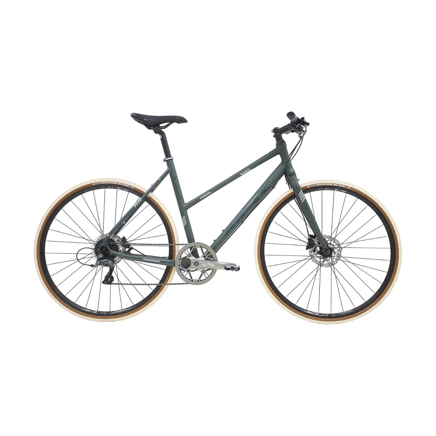 Denne udgave af MBKs Airborn er i damestel med semi-lav indstigning, så cyklen er let at komme af og på. Cyklen fås her i mat mørk grøn.