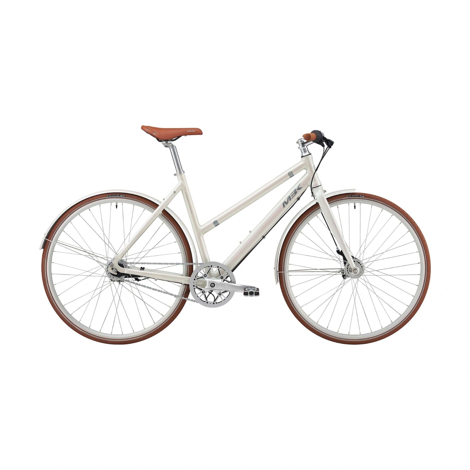 Denne udgave af MBK Concept 2Two er i dame stel med semi-lav indstigning, så cyklen er lettere at stige af og på. Cyklen fås her i blank hvid.