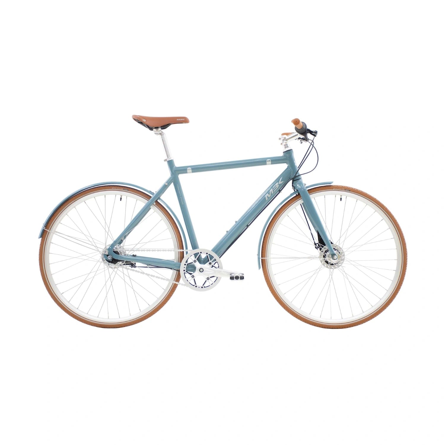 MBK Concept 2Two Herre cykel i blank blå grå. Du får her en nytænkt sportscykel i et retromoderne design. Concept 2Two kombinerer klassiske og moderne design-elementer, som tilsammen skaber et stilrent og unikt udseende, der ikke før er set i MBK. Samtidig er Concept 2Two designet med vedligeholdelsesvenlige kvalitetskomponenter samt en komfortabel sadel og håndtag. Den idéelle cykel til hverdagsbrug gennem byens gader og til fritidsture på landevejen.
