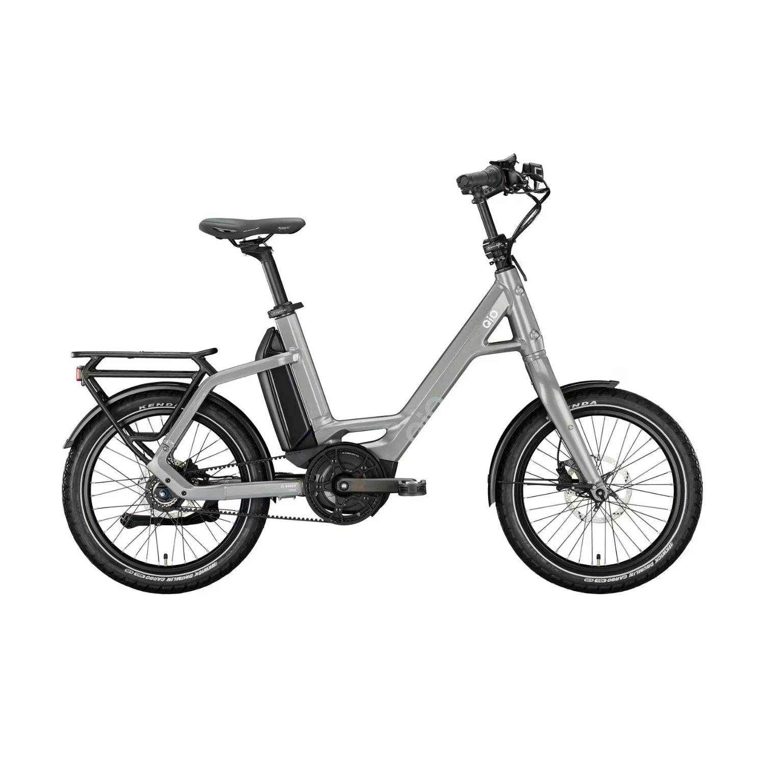 QiO Eins A-8R er en 20" mini elcykel, som her fås i farven, Lead metal (sølv grå). QiO har skabt en robust og kompakt elcykel, der er perfekt til både hverdagsbrug, campingturen eller båden.