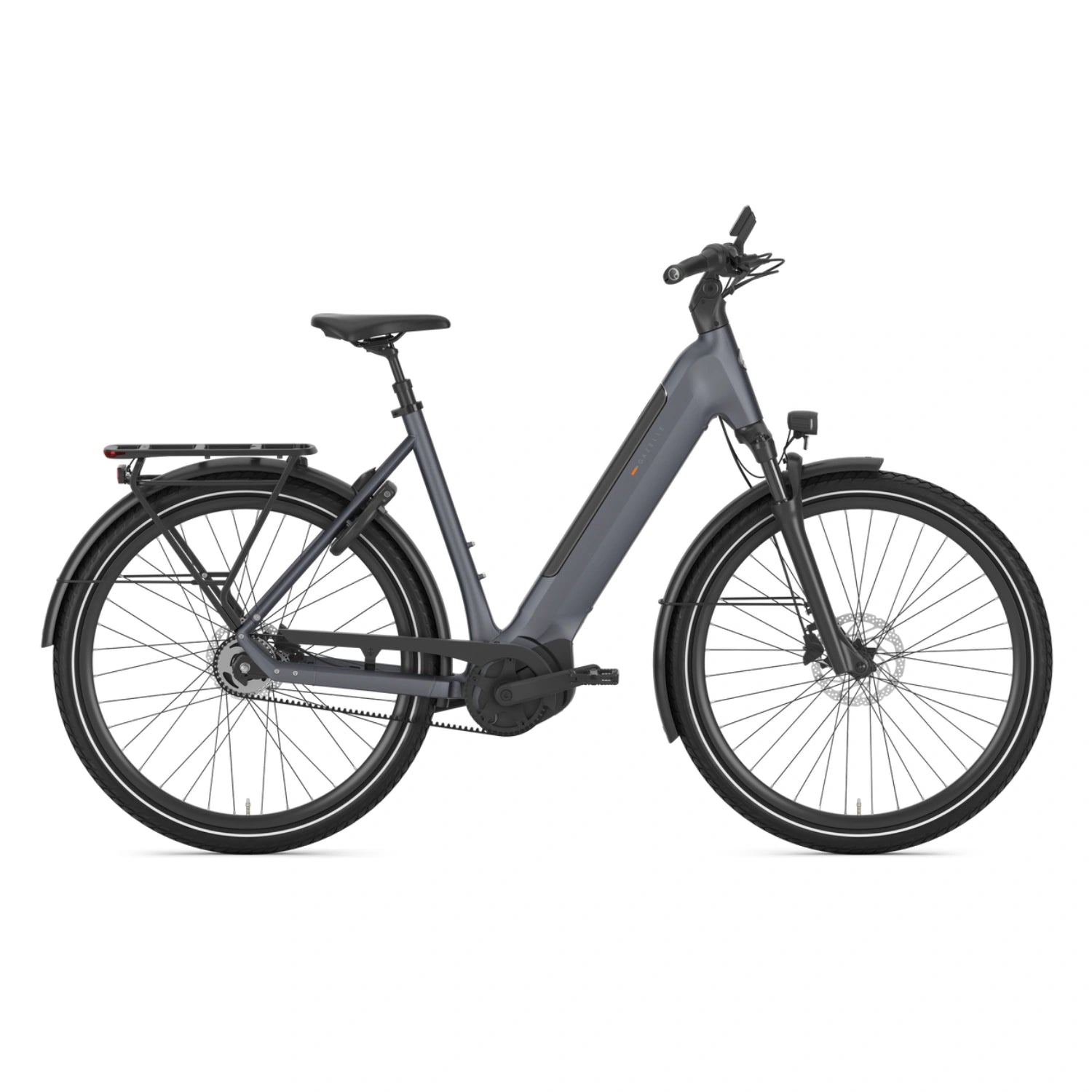 Denne udgave af Ultimate C5+ HMB er i dame-stel med lav indstigning, så cyklen er let at komme af og på. Cyklen fås her i farven Meteor Grey, som er en mat mørk grå farve.