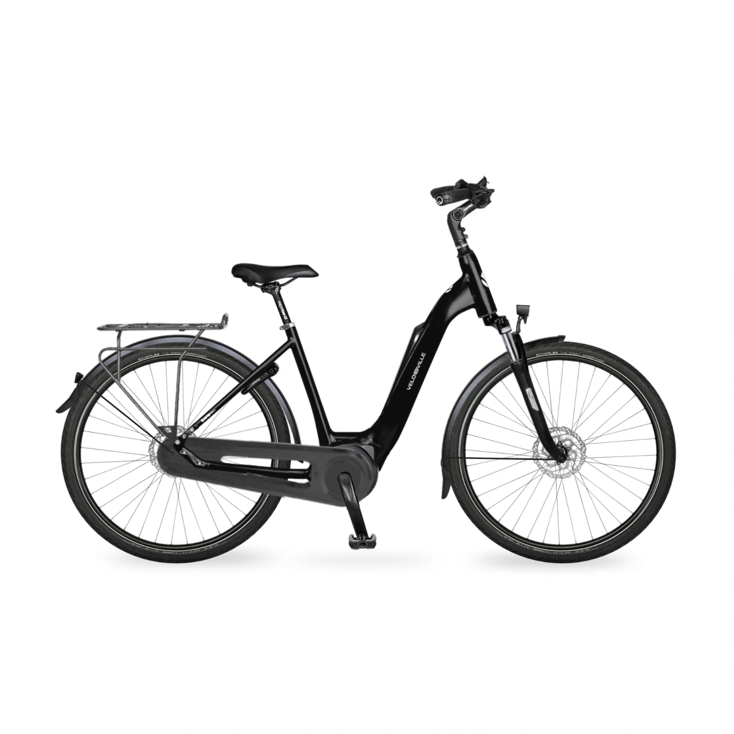 Her har du mulighed for at købe en forudbestemt, skræddersyet Velo de Ville AEB 800 Classic elcykel i farven, Deep Black Gloss (Blank Sort).