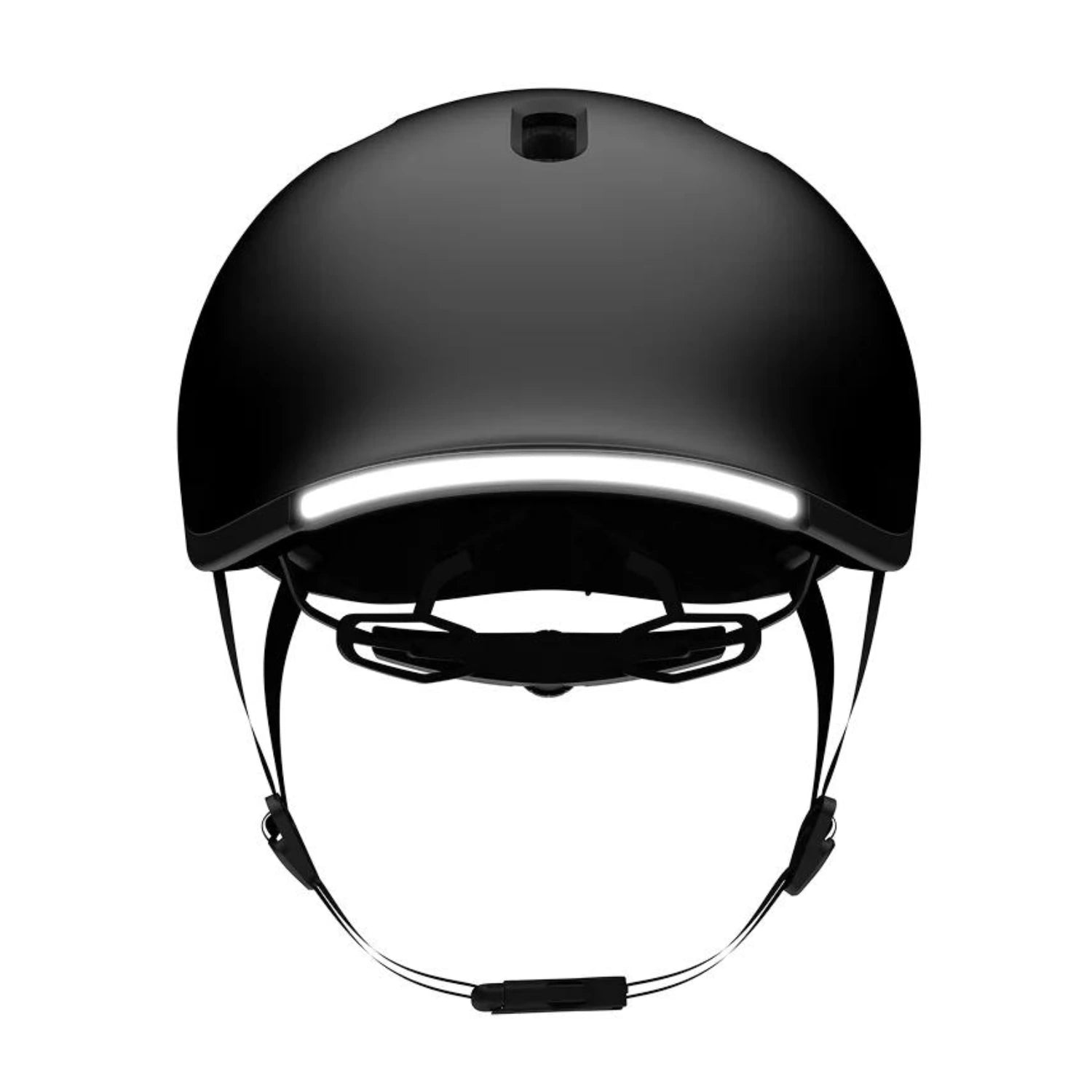 Lumos Nyxel MIPS Cykelhjelm i Black / Mat Sort. Du får her en af de aller fedeste cykelhjelme på markedet. Lumos Nyxel er nemlig godt beskyttende med integreret MIPS, integrerede forlygter, baglygter og blinklys, og så kan hjelmen styres og informere gennem Lumos' egen app!
